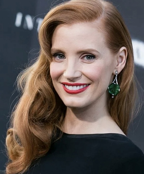 Одна из самых ярких актрис Голливуда выбрала любимый цвет всех рыжеволосых девушек - зелёный. На премьере фильма «Интерстеллар» красотка приковала все взгляды, надев серьги с жадеитом и бриллиантами. Никаких блёсток и страз: простой чёрный наряд позволяет вдоволь насладиться сложным узором и насыщенным цветом камня.