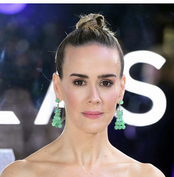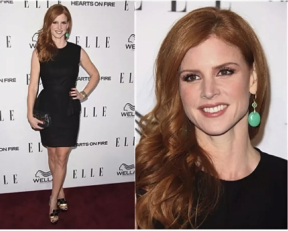 Зелёный- любимый цвет рыжих девушек, Саре ее серьги с крупными камнями идут невероятно!