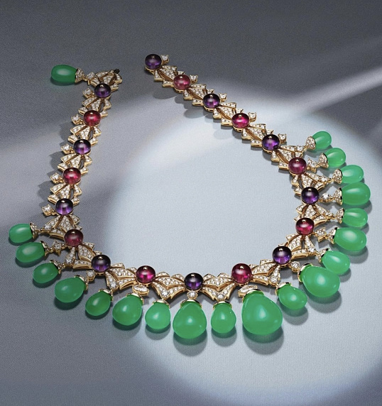 На закуску оставим Bvlgari и их шикарное колье с хризопразами, аметистами и турмалинами.