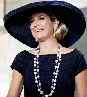 Даже если Максима выбирает традиционные королевские украшения, такие как жемчуг, то предпочитает необычные формы. Вот это ожерелье из крупных барочных жемчужин смотрится невероятно стильно!