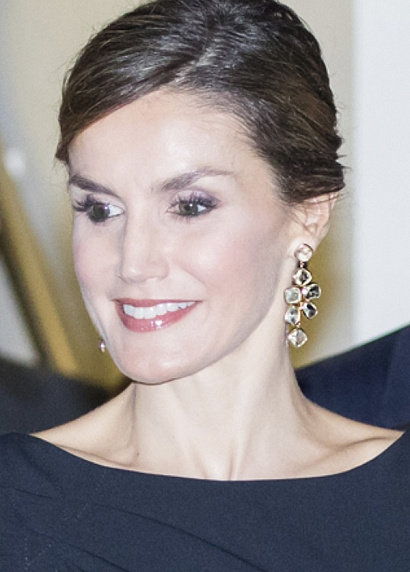 Испанская королева знаменита своей нежной любовью к цветным камням. В этот раз она выбрала серьги с зелёным аметистом от Coolook.
