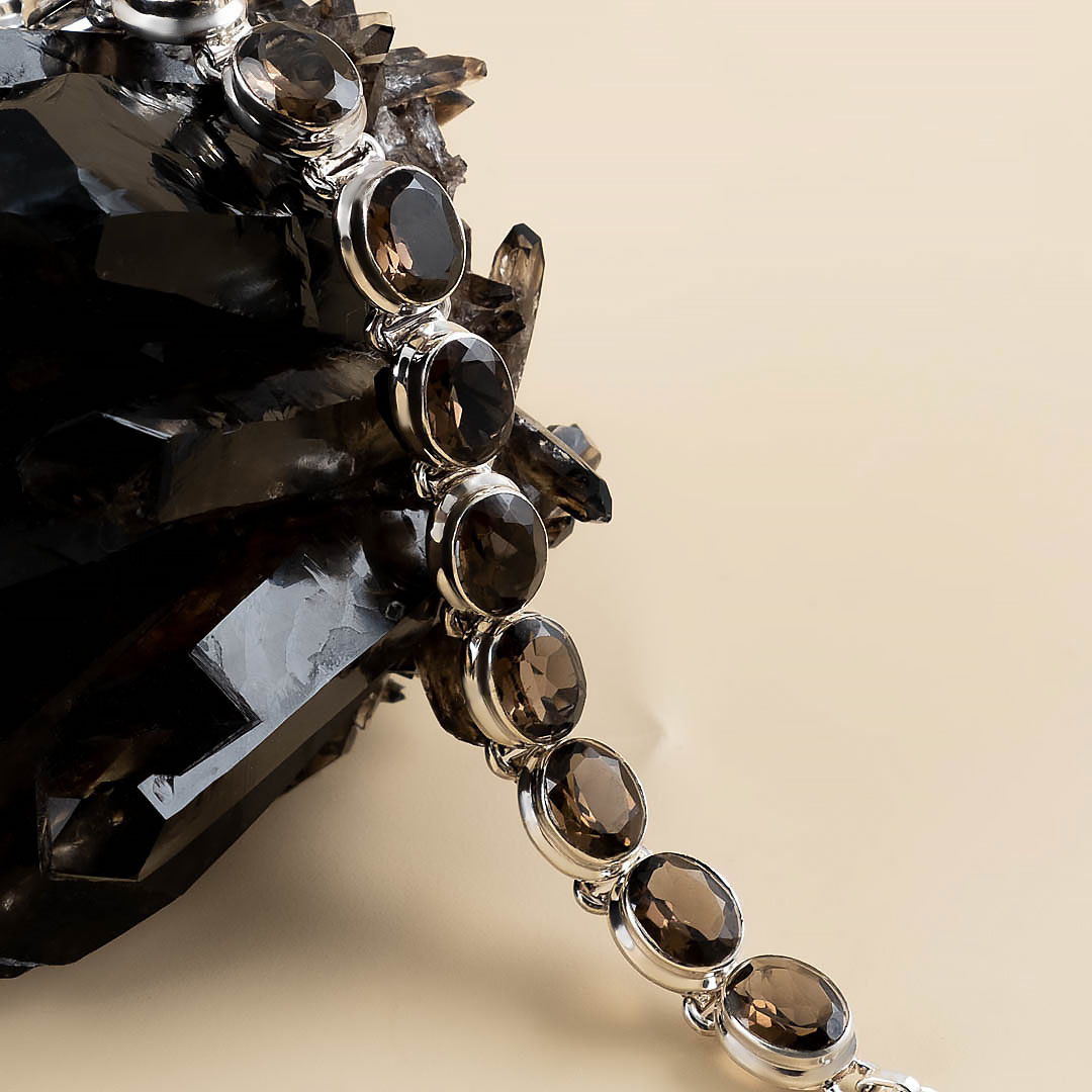 Браслет из серебра с раухтопазом (дымчатый кварц)