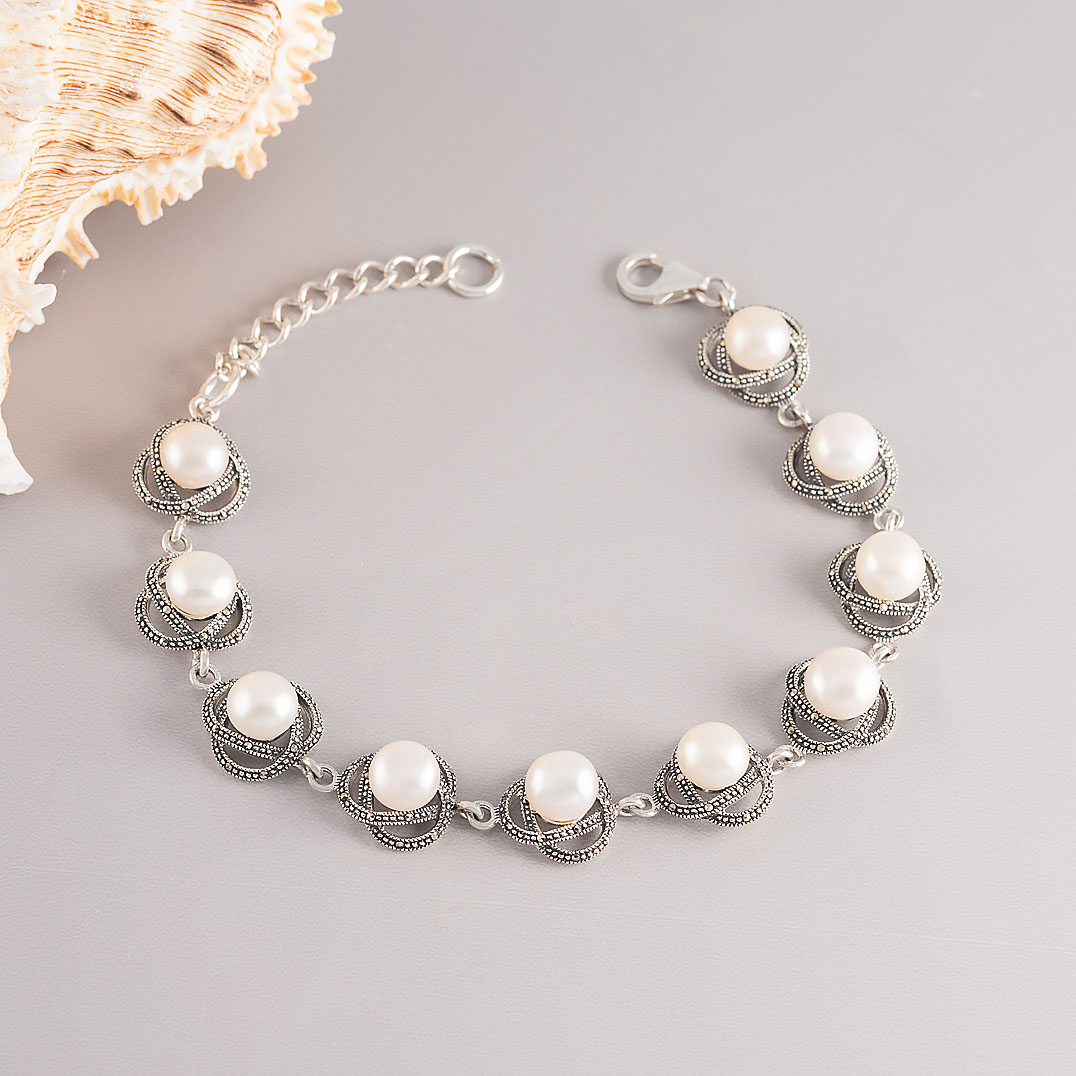 Браслет из серебра с жемчугом, марказитом
