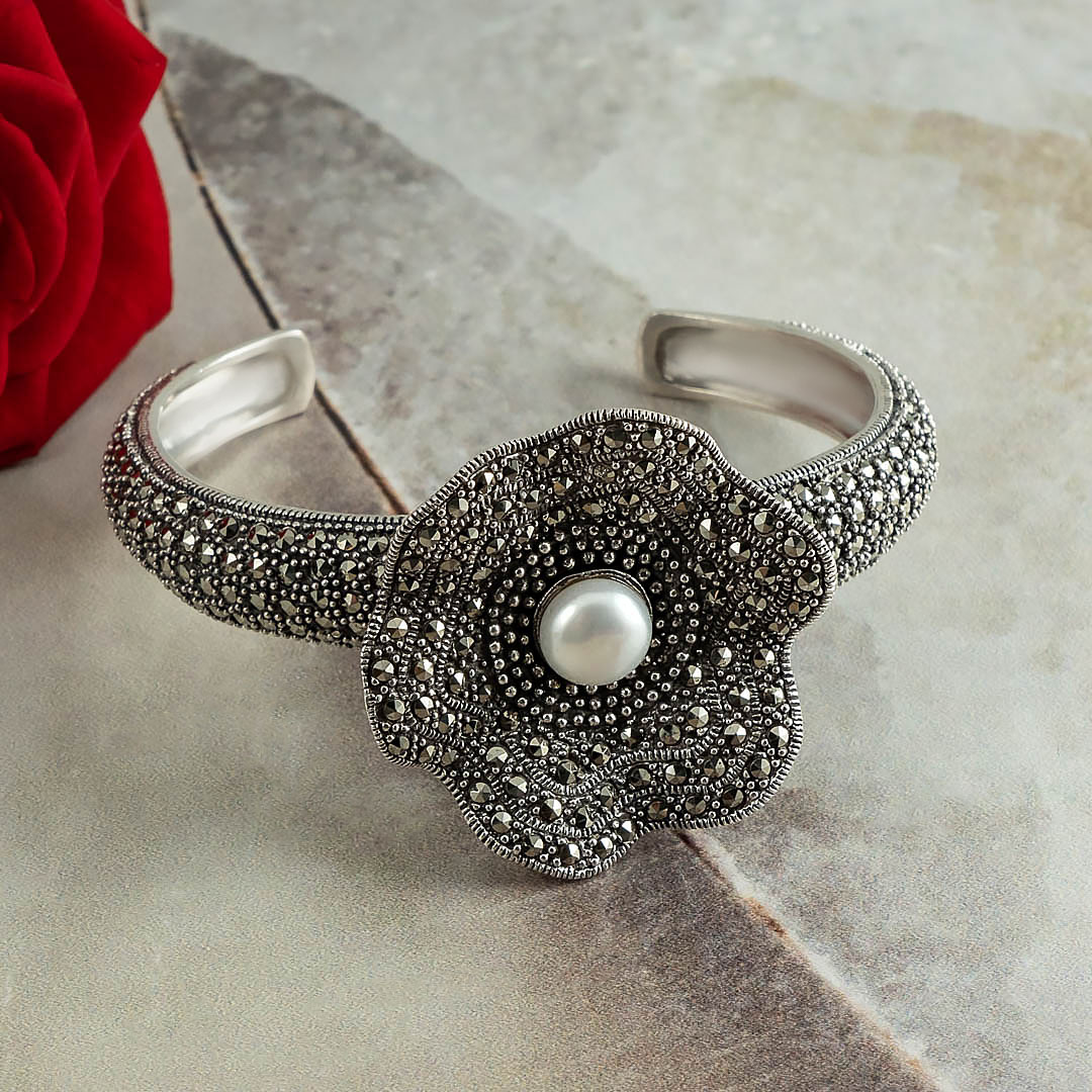 Браслет из серебра с жемчугом, марказитом