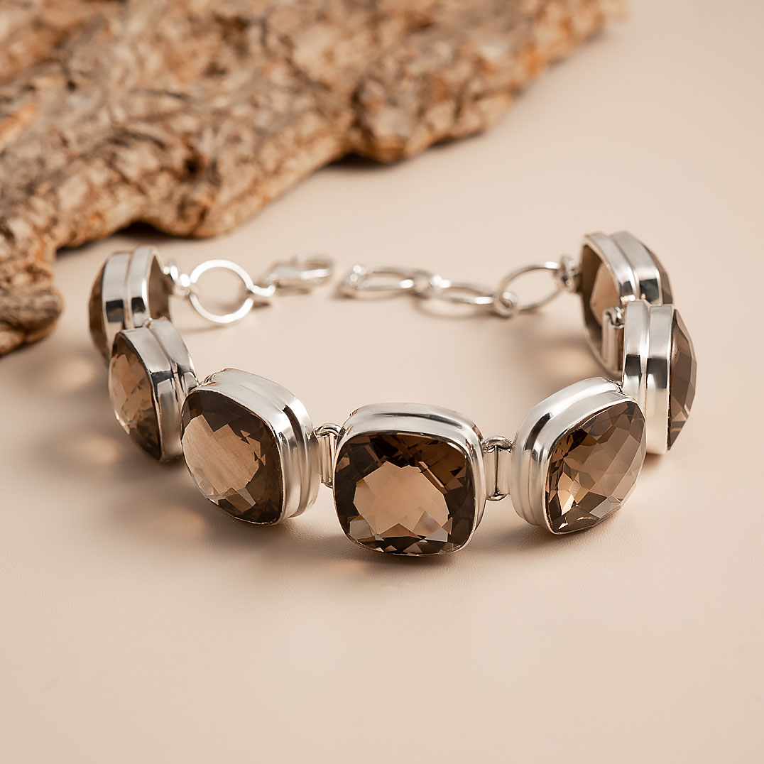 Браслет из серебра с раухтопазом (дымчатый кварц)