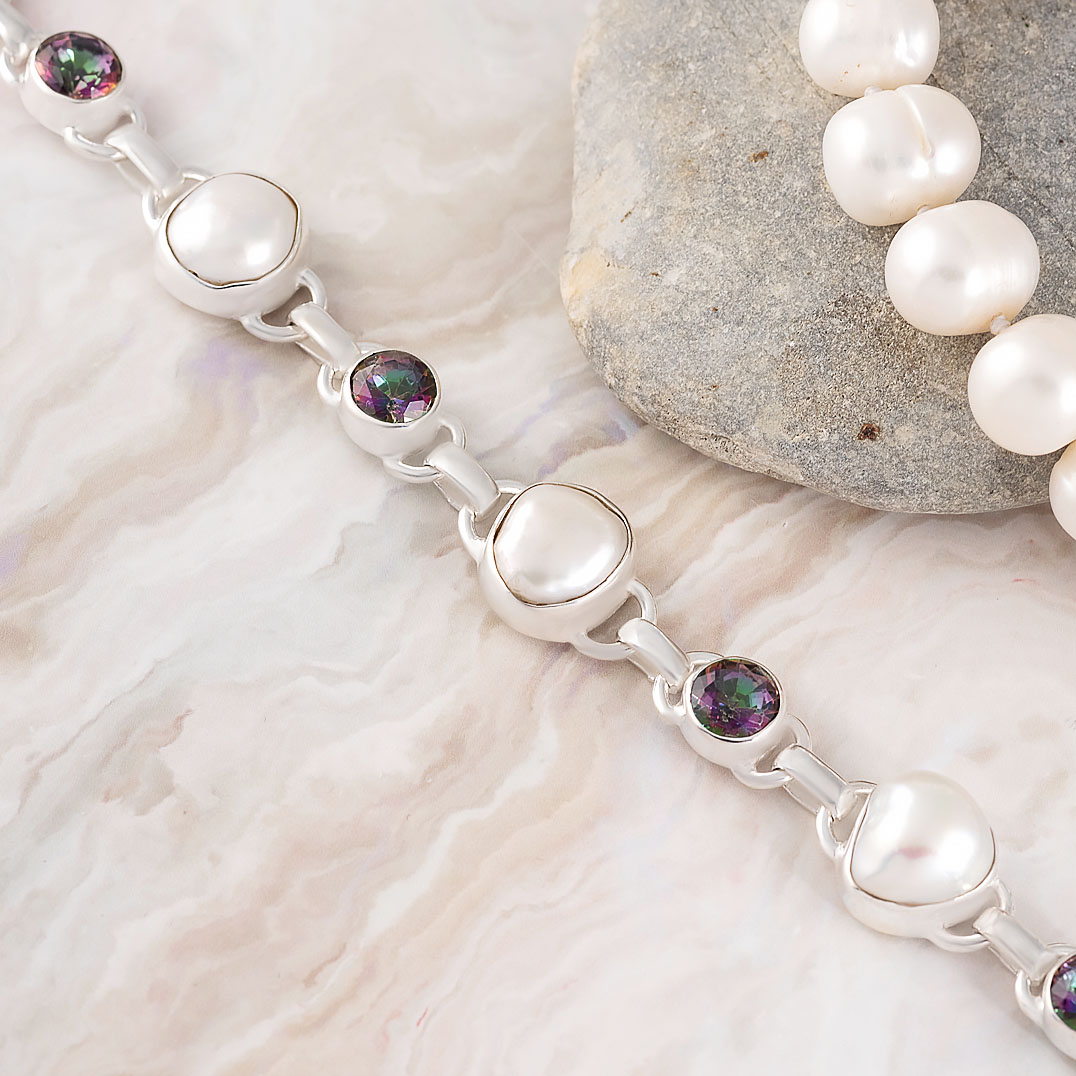 Браслет из серебра с барочным жемчугом, мистик кварцем
