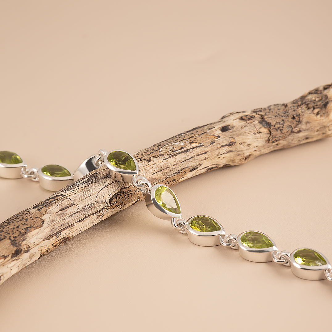 Браслет из серебра с цитрином, хризолитом, раухтопазом (дымчатый кварц), гессонитом