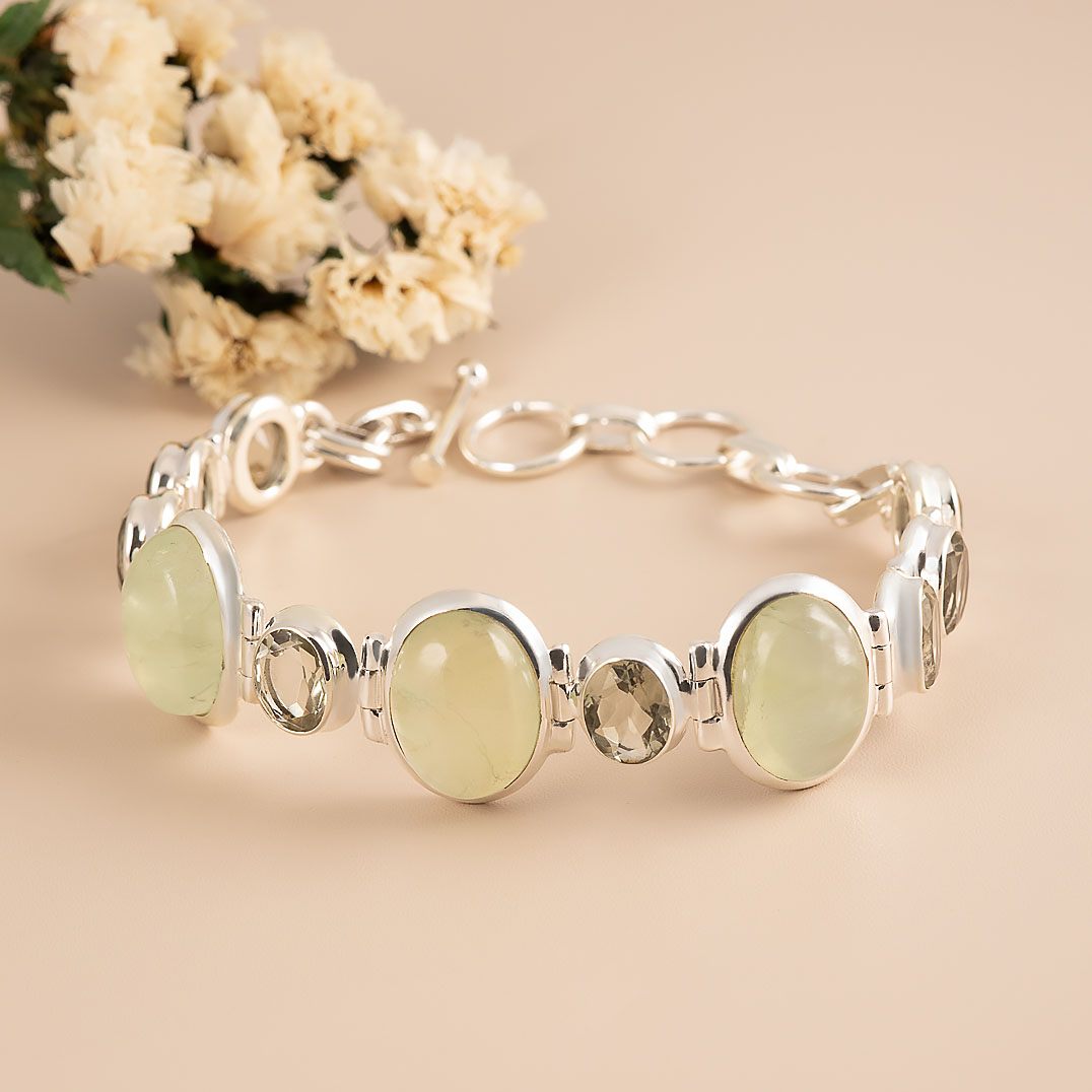 Браслет из серебра с празиолитом, пренитом