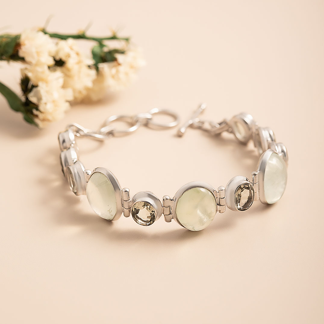 Браслет из серебра с празиолитом, пренитом