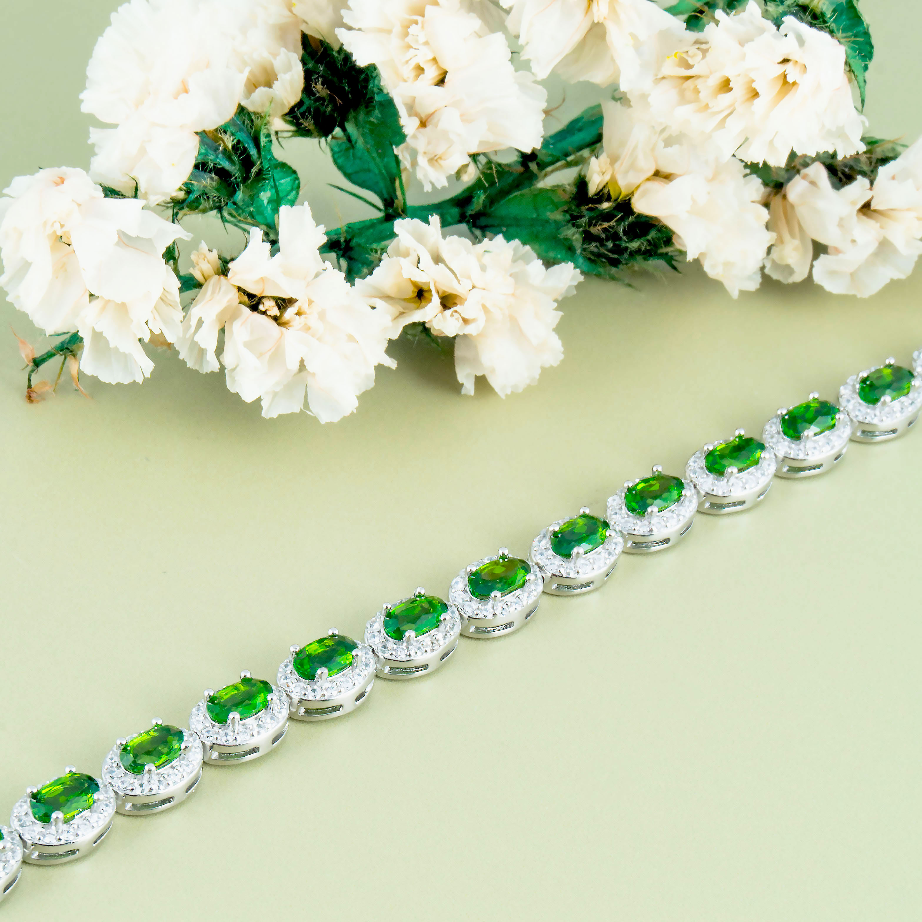 Браслет из серебра с фианитом, хромдиопсидом