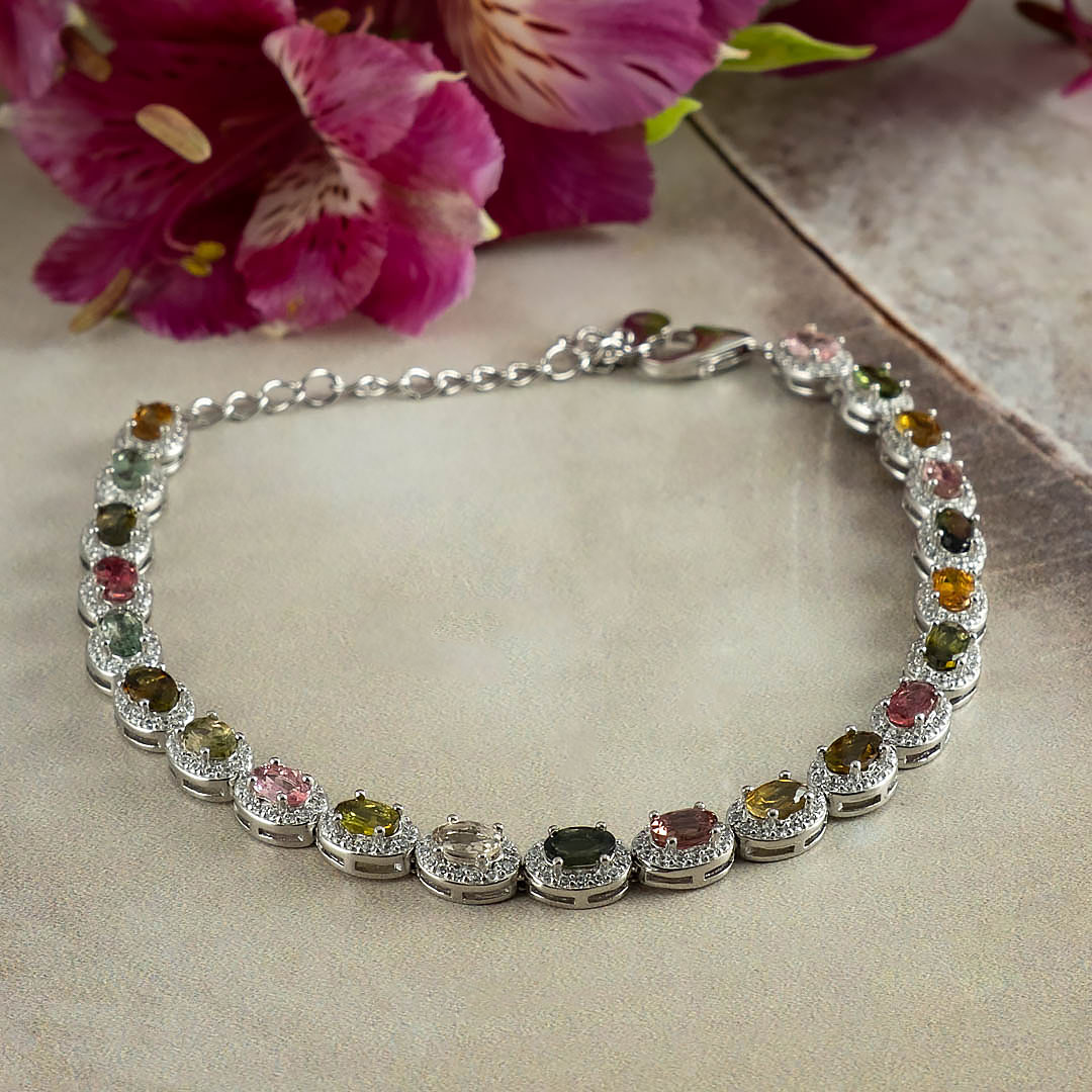 Браслет из серебра с турмалином, фианитом