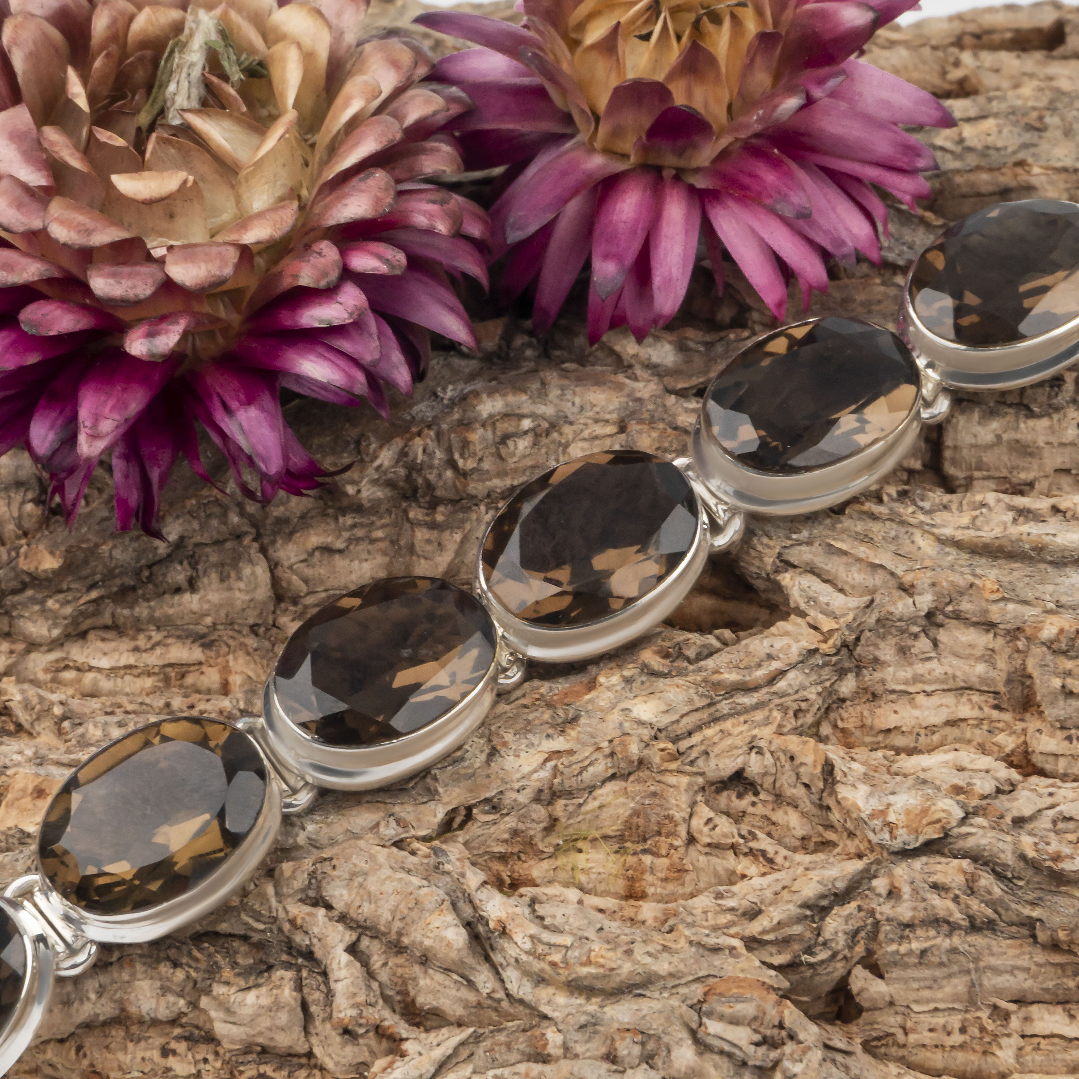Браслет из серебра с раухтопазом (дымчатый кварц)
