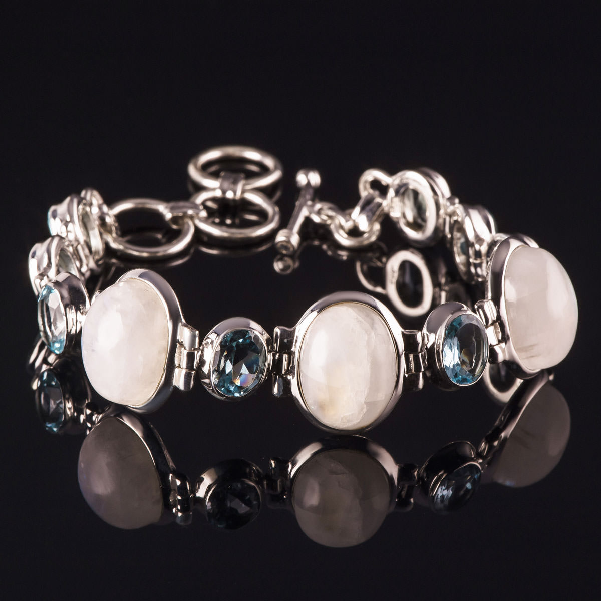Лунный камень - разновидность полевого шпата, один из самых таинственных и красивых минералов. Прозрачно-серебряная сфера этого камня поражает нежностью внутренних переливов. Это свечение и мерцание называется иризацией, и объясняется расположением тонких пластинок в минерале. Благодаря нежному цвету и необычному оптическому эффекту, лунный камень стал очень популярным украшением. В древности люди считали, что этот серебристый камешек - не что иное, как затвердевшие лучики Луны. И правда, рассматривая минерал, можно подумать, что держишь в ладошке светящийся кусочек загадочной планеты. Серебристо-голубоватые переливы лунного камня никого не оставляют равнодушным!