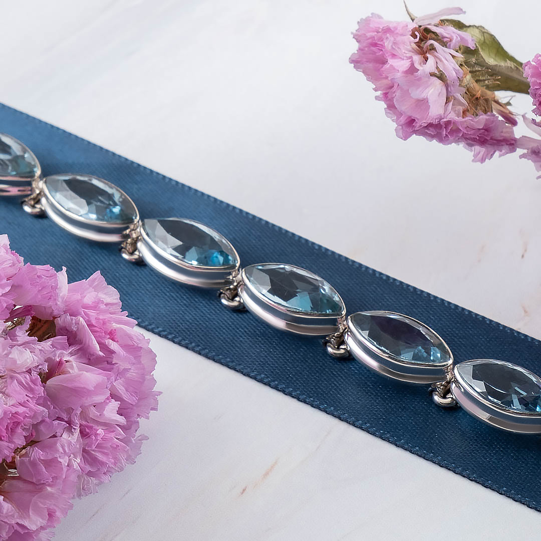 Топаз - один из самых популярных драгоценных камней в ювелирном искусстве. По твердости он уступает только алмазу и корунду. Прозрачность и бриллиантовый блеск граней делают его удивительно привлекательным для коллекционеров. Название камень получил в честь острова Топазос в Красном море. Люди знали этот камень еще в древние времена. Так, Библия гласит, что топаз составлял часть украшения первосвященника Аарона. Королевские дворы Европы также выбирали этот камень для ювелирных коллекций. Известен, например, камень “Браганза“, входящий в число регалий португальской короны. Цветовая гамма этого драгоценного камня разнообразна: существуют розовые, желтые, голубые, фиолетовые, винные топазы. Голубые топазы принято разделять на три категории в зависимости от интенсивности окраски (обычно достигаемой за счет облучения): Sky Blue - небесно-голубые, Swiss Blue - швейцарские, с более насыщенным цветом, и London Blue - лондонские, с наиболее глубоким оттенком синевы.