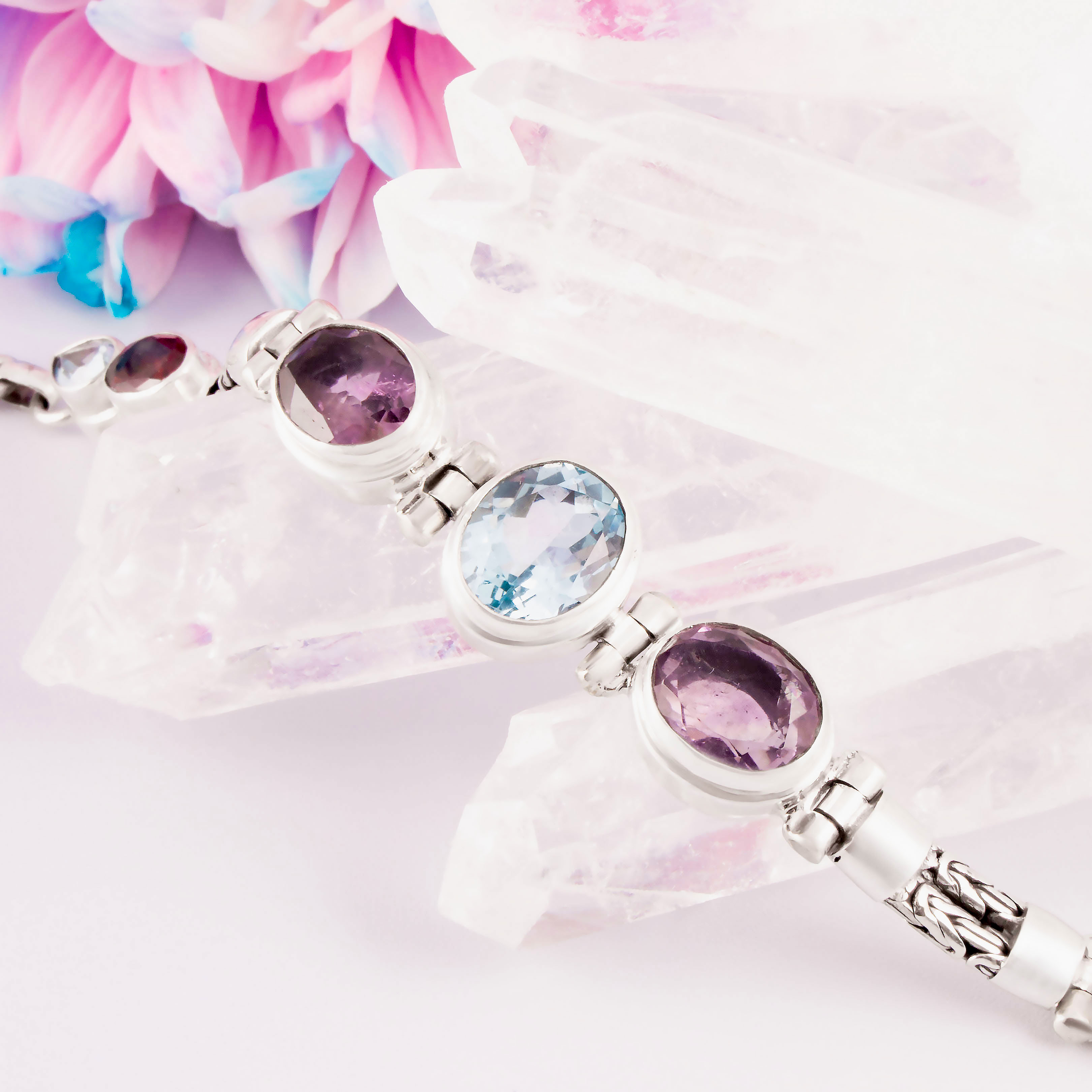 Браслет из серебра с топазом, гранатом, аметистом