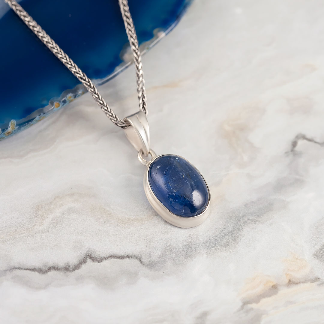 Кианит привлекает своим насыщенным цветом и необычной “слоистой“ структурой, делающей его похожим на леденец. Название произошло от греческого “kyanos“ - “синий“, и действительно, чаще всего этот камень радует глаз всеми оттенками океанической волны: от глубокой синевы до нежной лазури. Прозрачные кианиты поэтому можно принять за сапфиры. Однако, встречаются и желтые, и зеленые, похожие на изумруды, камни. Особенно красив кианит в серебре - глубокий синий цвет отлично гармонирует с холодностью белого металла.