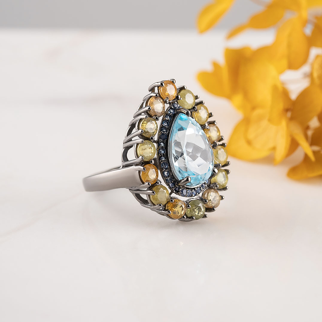 Кольцо из серебра с сапфиром, топазом
