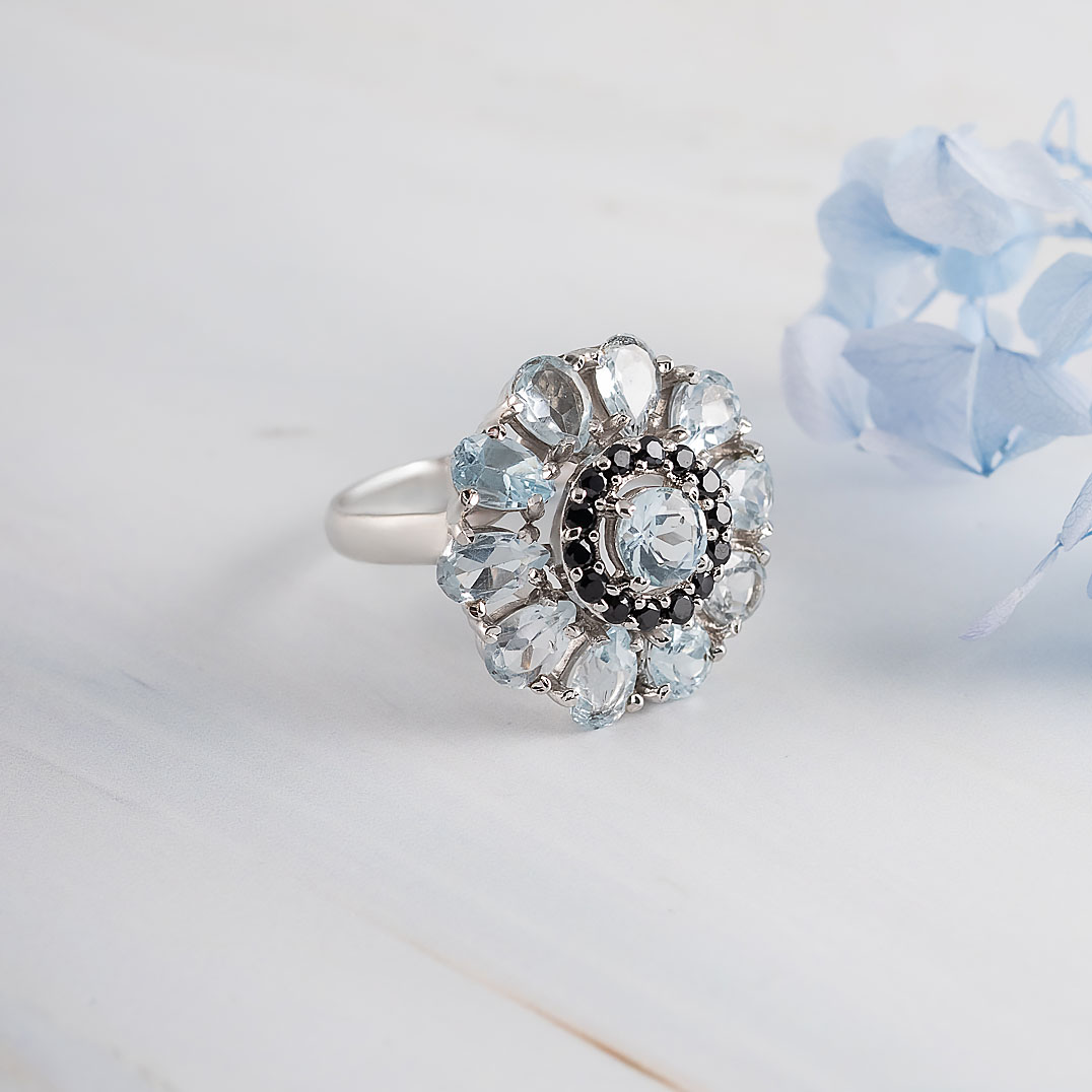 Топаз - один из самых популярных драгоценных камней в ювелирном искусстве. По твердости он уступает только алмазу и корунду. Прозрачность и бриллиантовый блеск граней делают его удивительно привлекательным для коллекционеров. Название камень получил в честь острова Топазос в Красном море. Люди знали этот камень еще в древние времена. Так, Библия гласит, что топаз составлял часть украшения первосвященника Аарона. Королевские дворы Европы также выбирали этот камень для ювелирных коллекций. Известен, например, камень “Браганза“, входящий в число регалий португальской короны. Цветовая гамма этого драгоценного камня разнообразна: существуют розовые, желтые, голубые, фиолетовые, винные топазы. Голубые топазы принято разделять на три категории в зависимости от интенсивности окраски (обычно достигаемой за счет облучения): Sky Blue - небесно-голубые, Swiss Blue - швейцарские, с более насыщенным цветом, и London Blue - лондонские, с наиболее глубоким оттенком синевы.