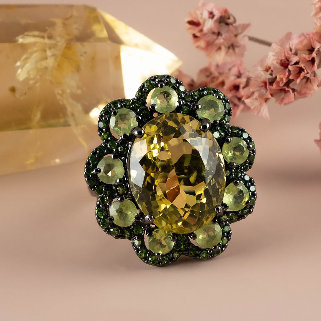 Кольцо из серебра с цитрином, хризолитом, хромдиопсидом