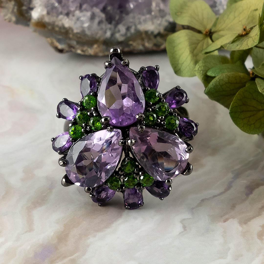Аметист - это наиболее дорогая разновидность кварца. Магический фиолетовый цвет этого камня во все времена обладал действительно завораживающим эффектом. Своим невероятным цветом он обязан железу, именно этот элемент и придает прозрачному камню его волшебные темно-лавандовые и фиалковые оттенки. Цвет может варьироваться в зависимости от месторождения. Например, цейлонские аметисты имеют нежно - фиолетовый оттенок, а бразильские - более кровавый и насыщенно-пурпурный. Название минерала связано с легендой о прекрасной нимфе Аметис, которую Артемида превратила в драгоценный камень, чтобы защитить от посягательств бога виноделия Диониса.