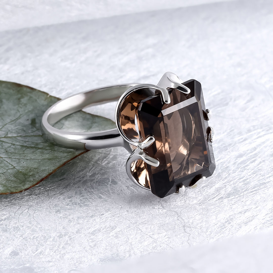 Кольцо из серебра с раухтопазом (дымчатый кварц)