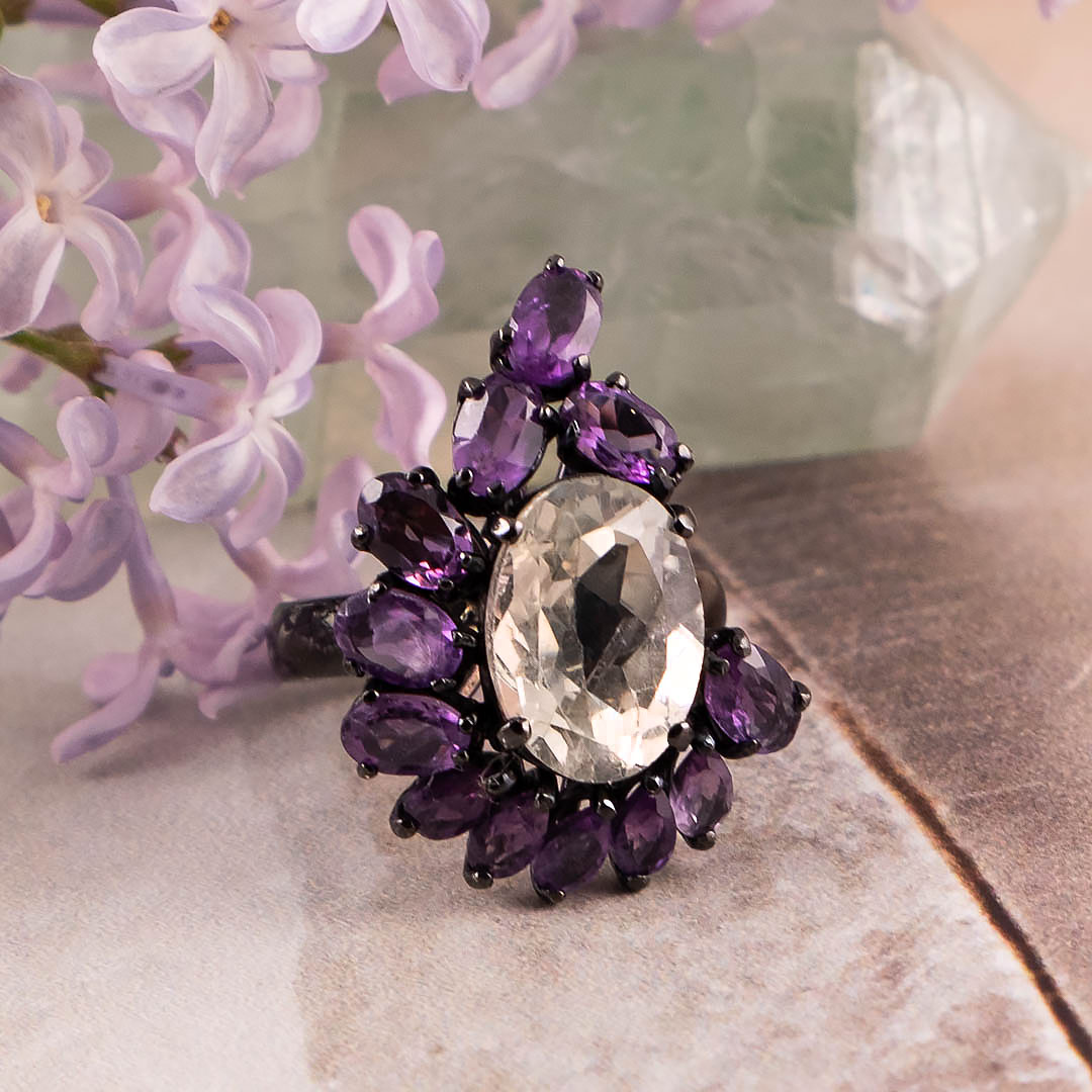 Аметист - это наиболее дорогая разновидность кварца. Магический фиолетовый цвет этого камня во все времена обладал действительно завораживающим эффектом. Своим невероятным цветом он обязан железу, именно этот элемент и придает прозрачному камню его волшебные темно-лавандовые и фиалковые оттенки. Цвет может варьироваться в зависимости от месторождения. Например, цейлонские аметисты имеют нежно - фиолетовый оттенок, а бразильские - более кровавый и насыщенно-пурпурный. Название минерала связано с легендой о прекрасной нимфе Аметис, которую Артемида превратила в драгоценный камень, чтобы защитить от посягательств бога виноделия Диониса.