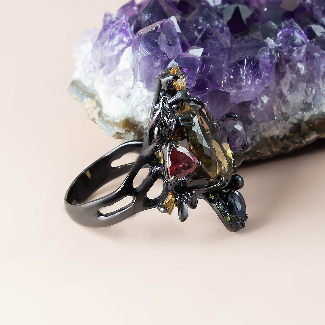 Кольцо из серебра с кварцем, аметистом