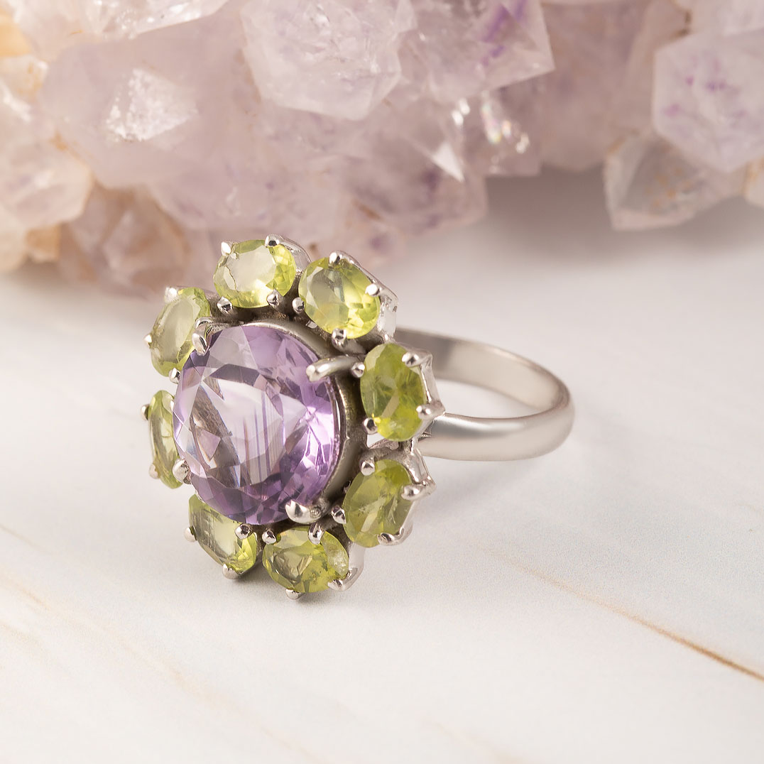 Кольцо из серебра с аметистом, хризолитом