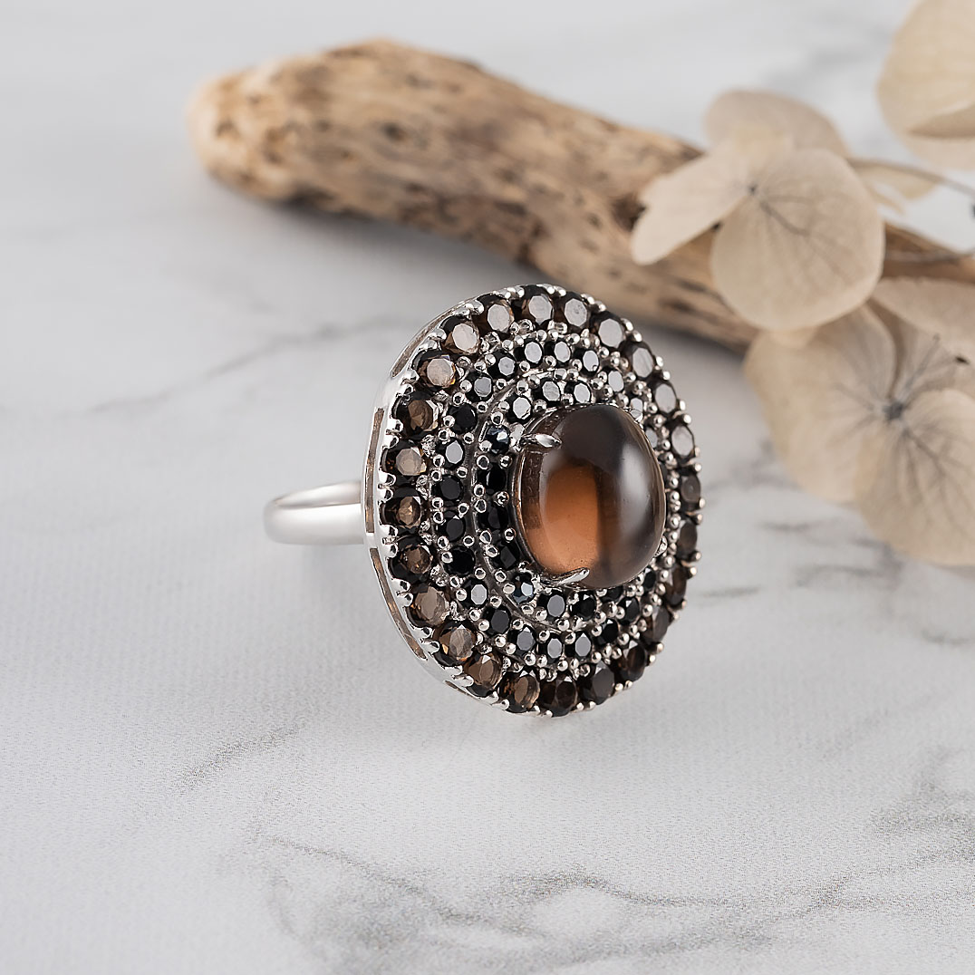 Кольцо из серебра с ониксом, раухтопазом (дымчатый кварц)