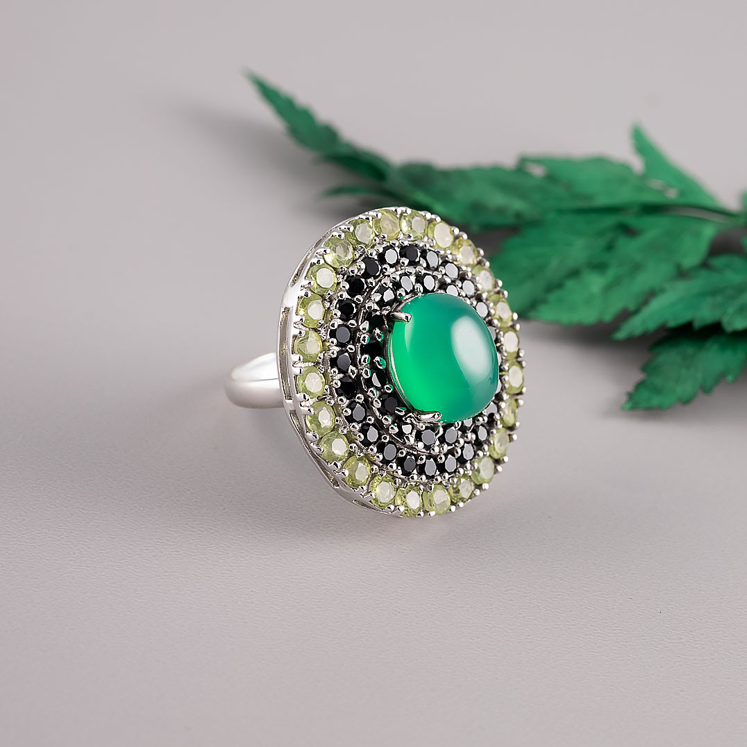 Кольцо из серебра с ониксом, хризолитом, хризопразом