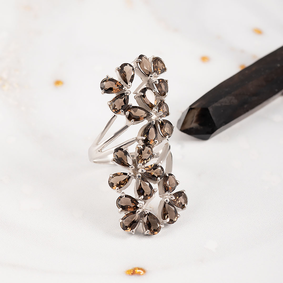 Кольцо из серебра с раухтопазом (дымчатый кварц)