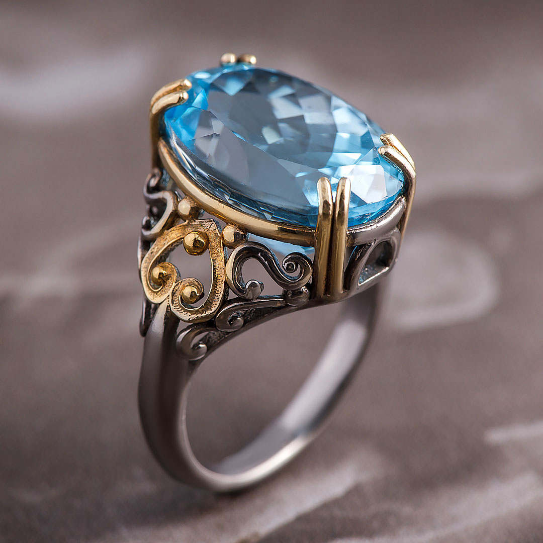 Топаз - один из самых популярных драгоценных камней в ювелирном искусстве. По твердости он уступает только алмазу и корунду. Прозрачность и бриллиантовый блеск граней делают его удивительно привлекательным для коллекционеров. Название камень получил в честь острова Топазос в Красном море. Люди знали этот камень еще в древние времена. Так, Библия гласит, что топаз составлял часть украшения первосвященника Аарона. Королевские дворы Европы также выбирали этот камень для ювелирных коллекций. Известен, например, камень “Браганза“, входящий в число регалий португальской короны. Цветовая гамма этого драгоценного камня разнообразна: существуют розовые, желтые, голубые, фиолетовые, винные топазы. Голубые топазы принято разделять на три категории в зависимости от интенсивности окраски (обычно достигаемой за счет облучения): Sky Blue - небесно-голубые, Swiss Blue - швейцарские, с более насыщенным цветом, и London Blue - лондонские, с наиболее глубоким оттенком синевы.