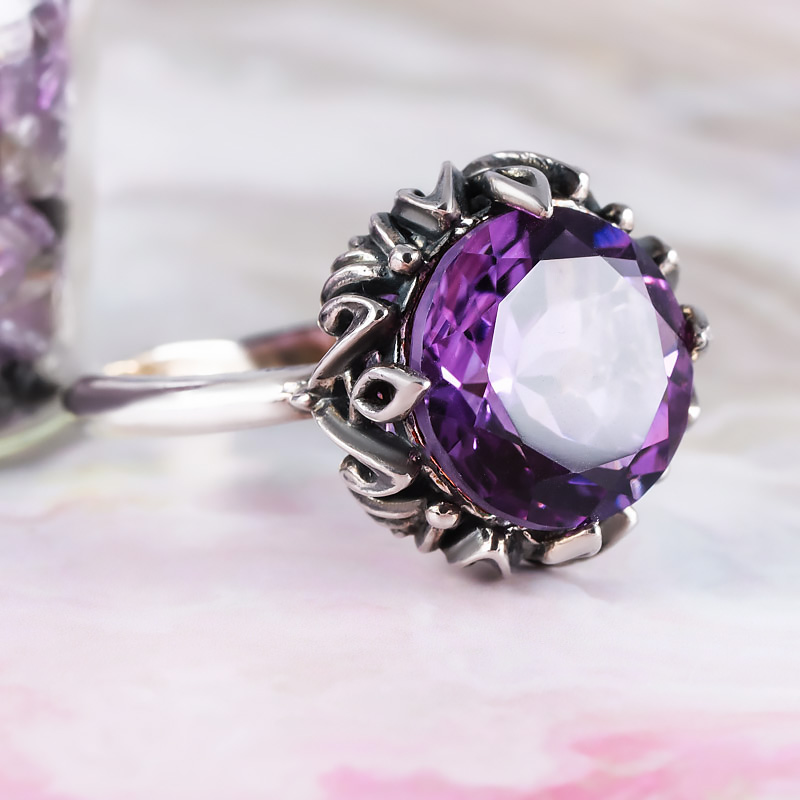 Аметист - это наиболее дорогая разновидность кварца. Магический фиолетовый цвет этого камня во все времена обладал действительно завораживающим эффектом. Своим невероятным цветом он обязан железу, именно этот элемент и придает прозрачному камню его волшебные темно-лавандовые и фиалковые оттенки. Цвет может варьироваться в зависимости от месторождения. Например, цейлонские аметисты имеют нежно - фиолетовый оттенок, а бразильские - более кровавый и насыщенно-пурпурный. Название минерала связано с легендой о прекрасной нимфе Аметис, которую Артемида превратила в драгоценный камень, чтобы защитить от посягательств бога виноделия Диониса.