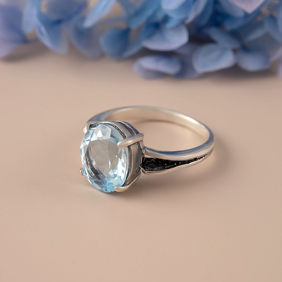Топаз - один из самых популярных драгоценных камней в ювелирном искусстве. По твердости он уступает только алмазу и корунду. Прозрачность и бриллиантовый блеск граней делают его удивительно привлекательным для коллекционеров. Название камень получил в честь острова Топазос в Красном море. Люди знали этот камень еще в древние времена. Так, Библия гласит, что топаз составлял часть украшения первосвященника Аарона. Королевские дворы Европы также выбирали этот камень для ювелирных коллекций. Известен, например, камень “Браганза“, входящий в число регалий португальской короны. Цветовая гамма этого драгоценного камня разнообразна: существуют розовые, желтые, голубые, фиолетовые, винные топазы. Голубые топазы принято разделять на три категории в зависимости от интенсивности окраски (обычно достигаемой за счет облучения): Sky Blue - небесно-голубые, Swiss Blue - швейцарские, с более насыщенным цветом, и London Blue - лондонские, с наиболее глубоким оттенком синевы.