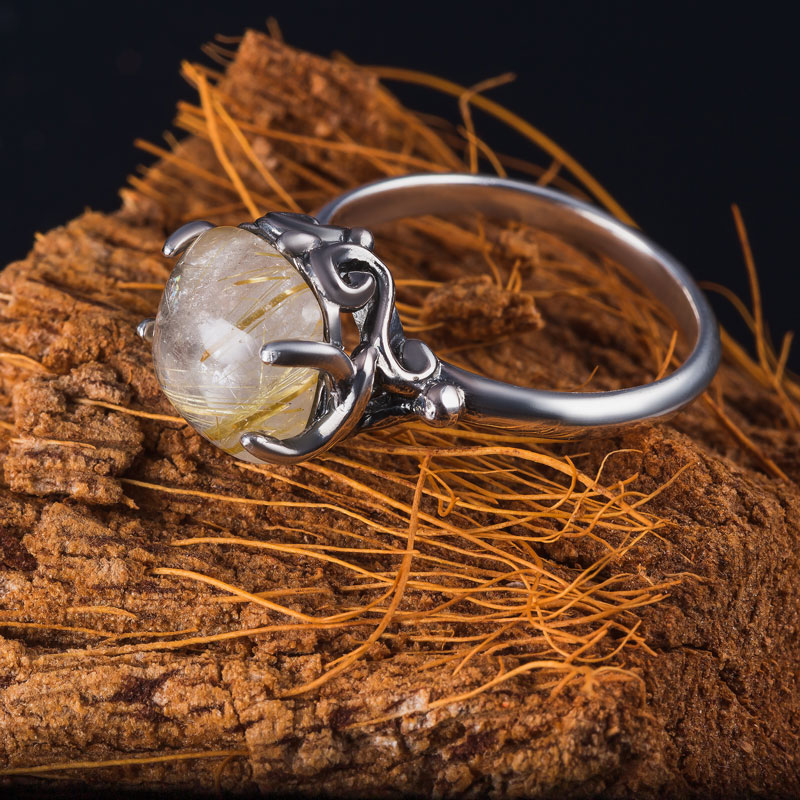 Кольцо из серебра с рутиловым кварцем (волосатик)