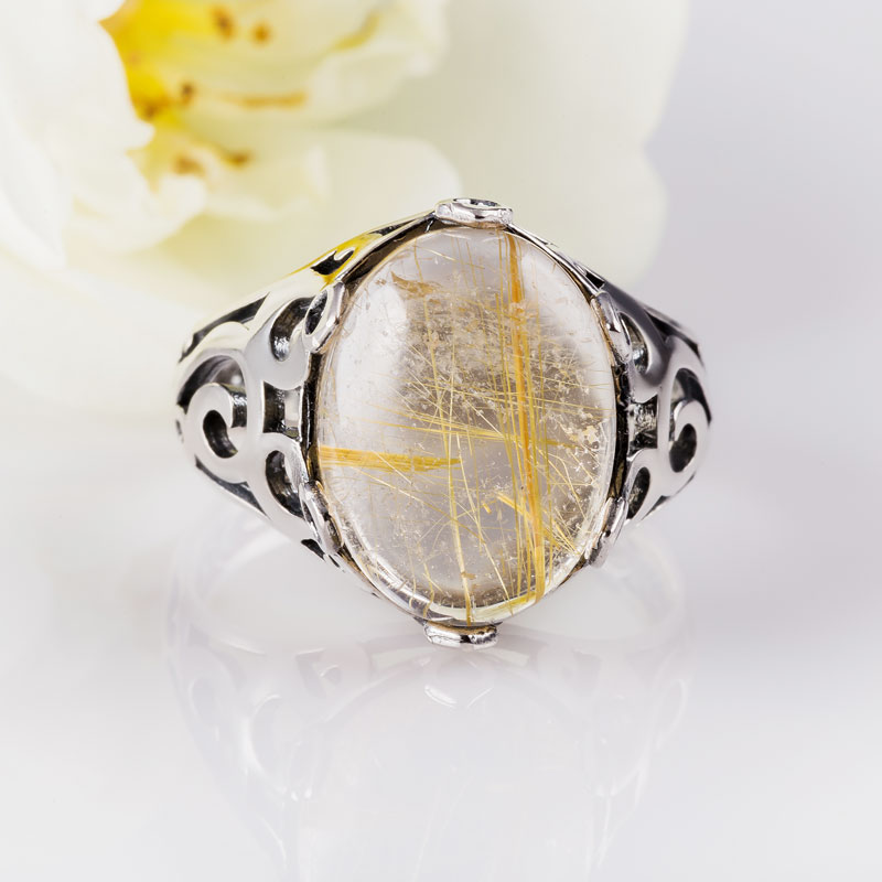 Кольцо из серебра с рутиловым кварцем (волосатик)