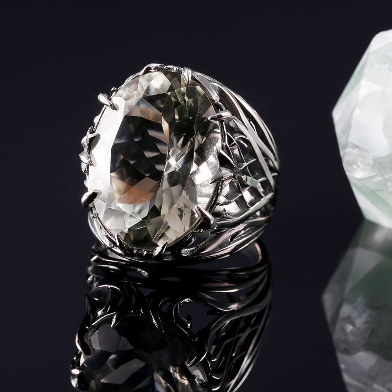 Празиолит - кварц нежного мятного оттенка, выглядит очень привлекательно и благородно. Красота празиолита - в его прозрачности и чистоте, в мягкости зеленого цвета. Этот камень называют также “зеленым аметистом“, ведь часто аметисты обрабатывают путем нагрева до 500 градусов, что заставляет их менять свой фиалковый оттенок на мятный. Чаще всего огранщики придают ему четкие формы, чтобы наиболее раскрыть сияние и блеск минерала.