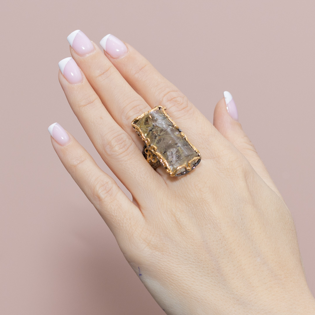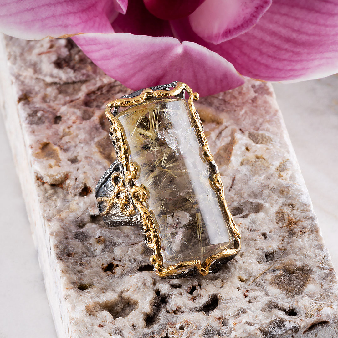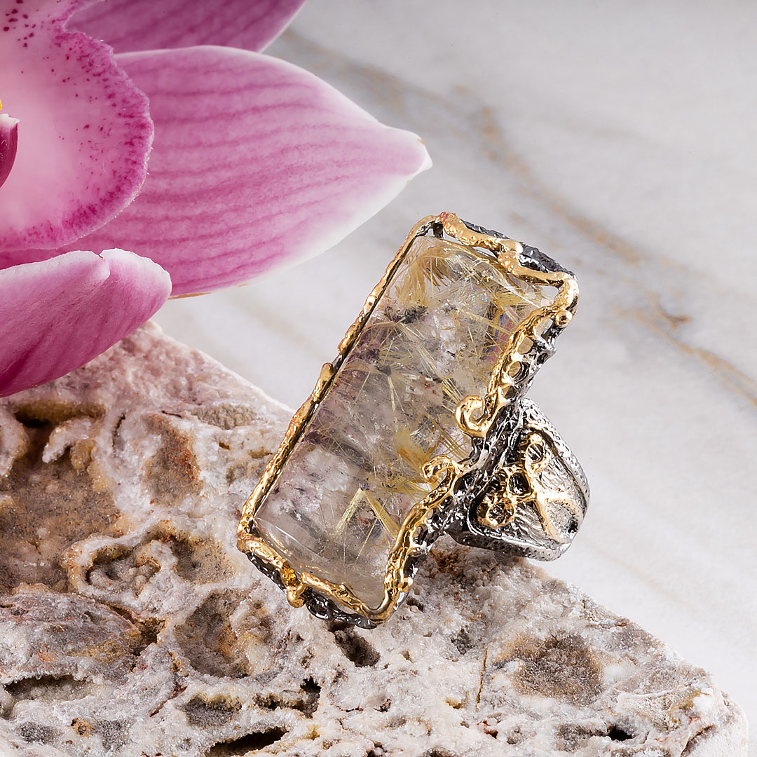 Кольцо из серебра с рутиловым кварцем (волосатик)