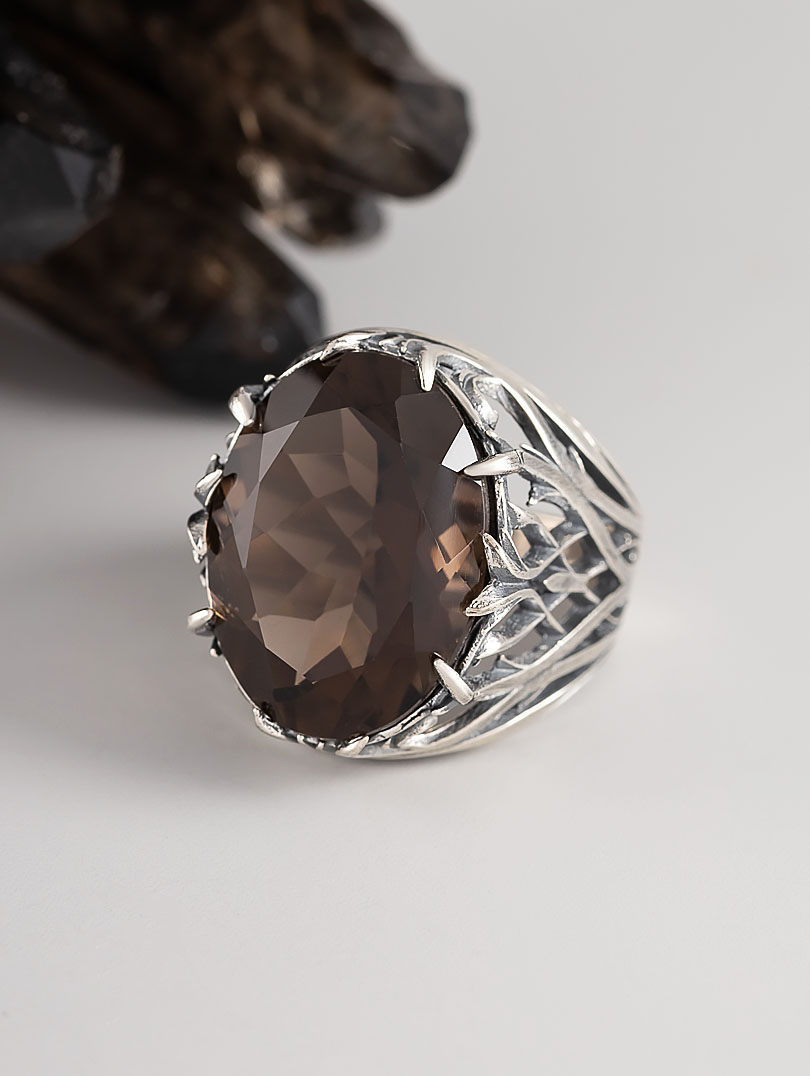 Кольцо из серебра с раухтопазом (дымчатый кварц)