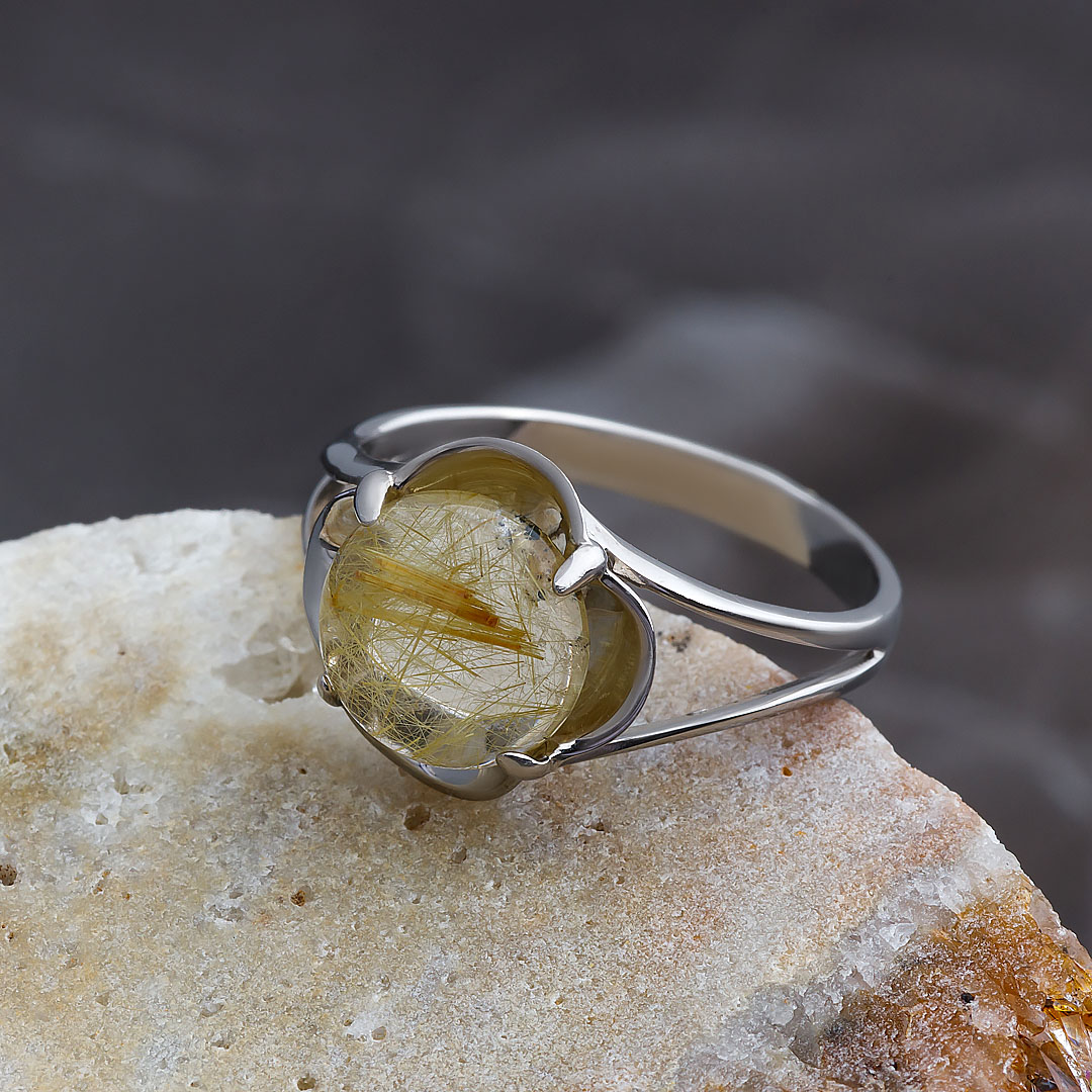 Кольцо из серебра с рутиловым кварцем (волосатик)
