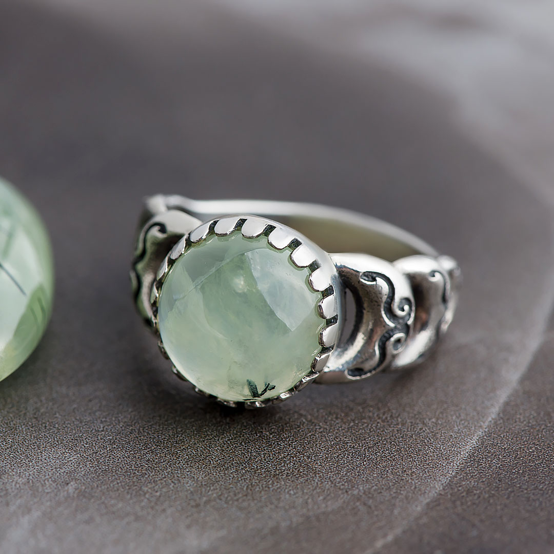 Пренит поражает своим нежным зеленоватым цветом, напоминающим первую весеннюю зелень. Этот минерал - непрозрачный, он имеет молочные переливы внутри, за счет которых выглядит очень сдержанно и благородно. При этом, особенность пренита - удивительное мягкое свечение, как будто идущее изнутри. Камень попал в Европу благодаря датскому мореплавателю Хендрику фон Прену, который привез его с мыса Доброй Надежды в 18 веке. В честь мореплавателя пренит и получил свое название. Он быстро завоевал любовь модниц во всем мире, которые и сейчас предпочитают украшения с этим камнем.