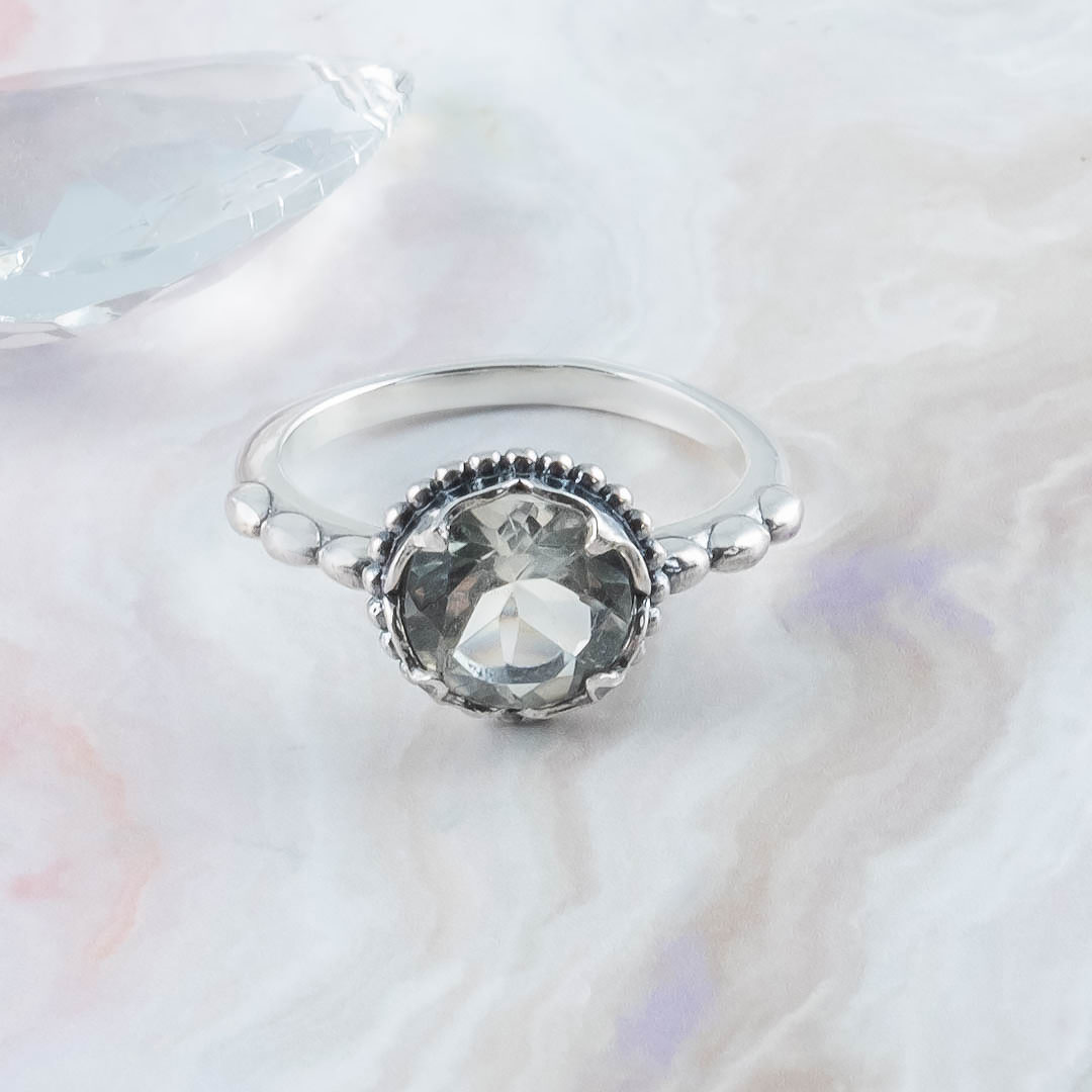 Празиолит - кварц нежного мятного оттенка, выглядит очень привлекательно и благородно. Красота празиолита - в его прозрачности и чистоте, в мягкости зеленого цвета. Этот камень называют также “зеленым аметистом“, ведь часто аметисты обрабатывают путем нагрева до 500 градусов, что заставляет их менять свой фиалковый оттенок на мятный. Чаще всего огранщики придают ему четкие формы, чтобы наиболее раскрыть сияние и блеск минерала.