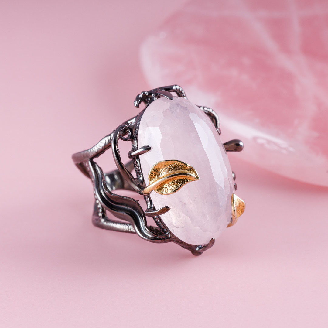 Кольцо из серебра с розовым кварцем