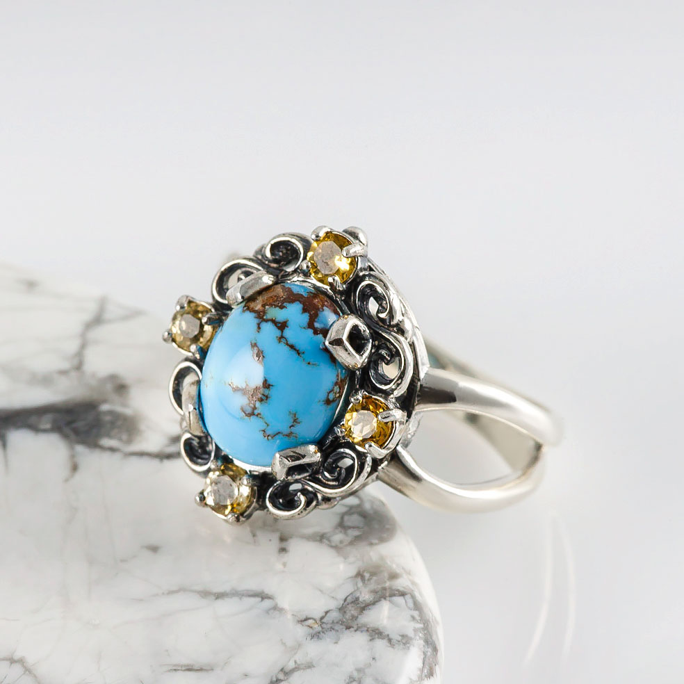Кольцо из серебра с цитрином, бирюзой