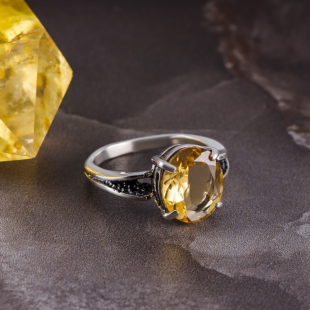 Кольцо из серебра с цитрином, турмалином, шпинелью