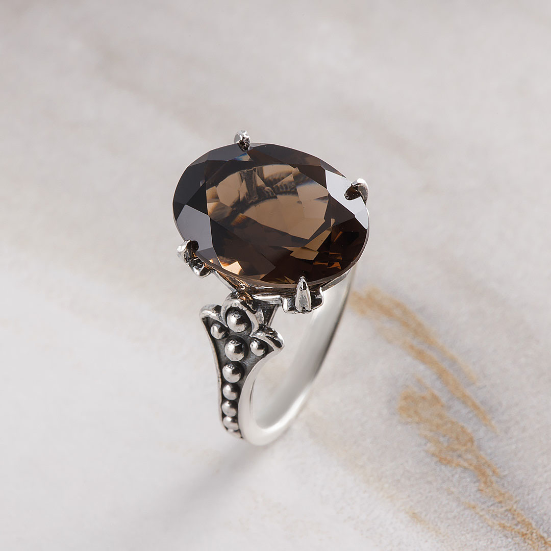 Кольцо из серебра с раухтопазом (дымчатый кварц)