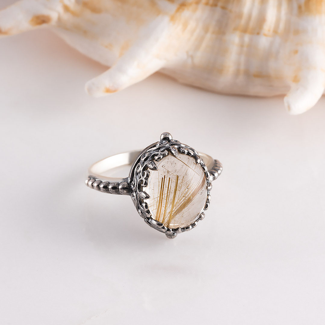 Кольцо из серебра с рутиловым кварцем (волосатик)