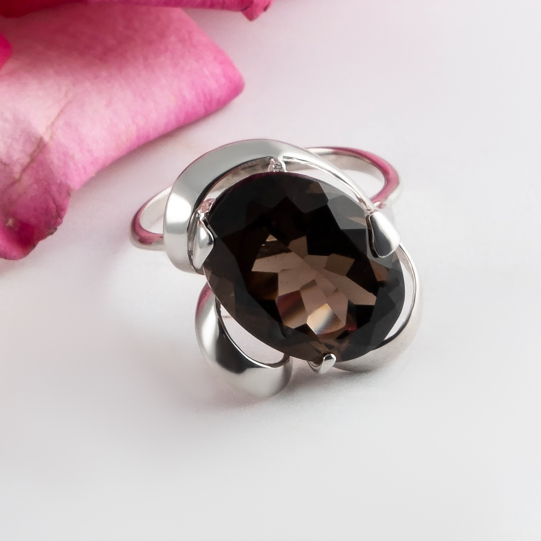 Кольцо из серебра с раухтопазом (дымчатый кварц)