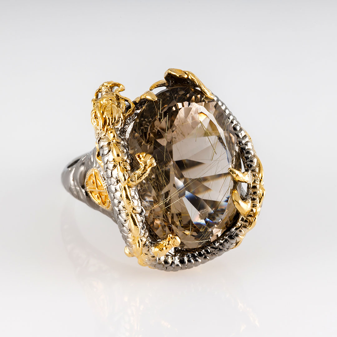 Кольцо из серебра с рутиловым кварцем (волосатик)