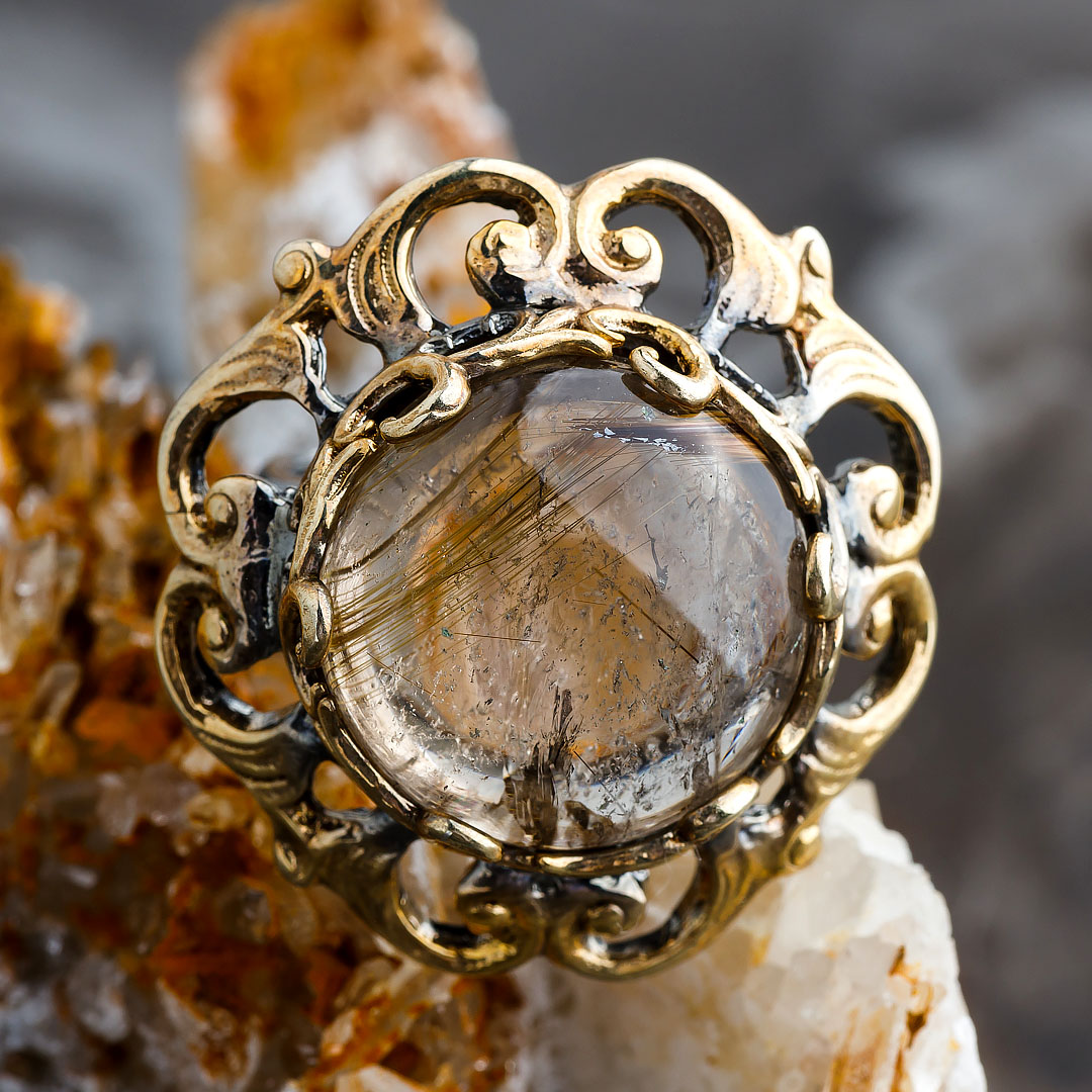 Кольцо из серебра с рутиловым кварцем (волосатик)